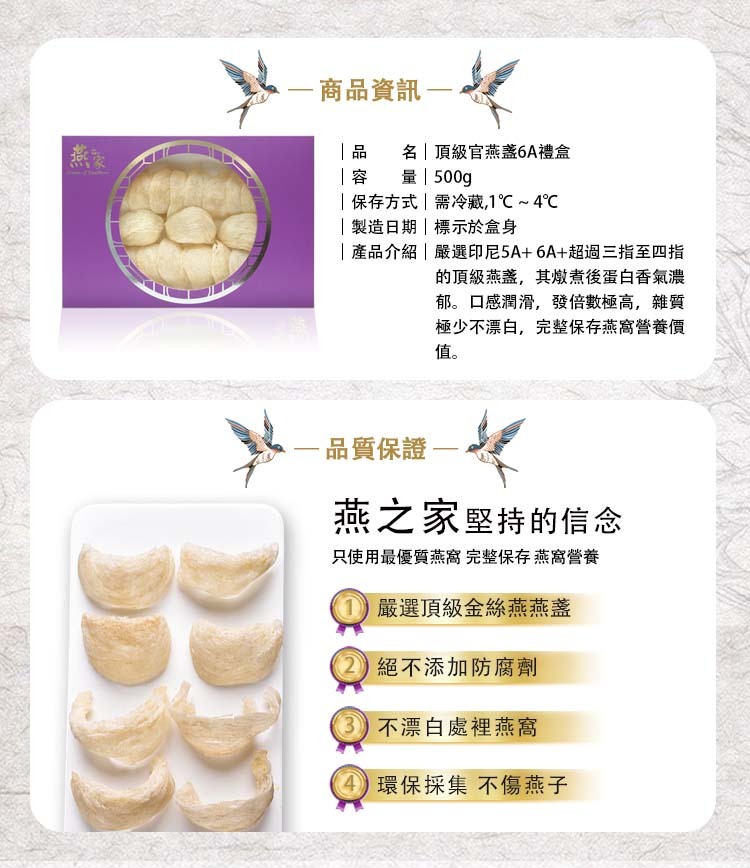 |品 名| 燕之家頂級官燕盞6A禮盒